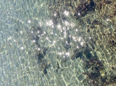 に浸かりながら眺めることを想定し、あえて解像度を落とした粒子のような質感で、水面のゆらぎと共鳴する没入感を表現しました。